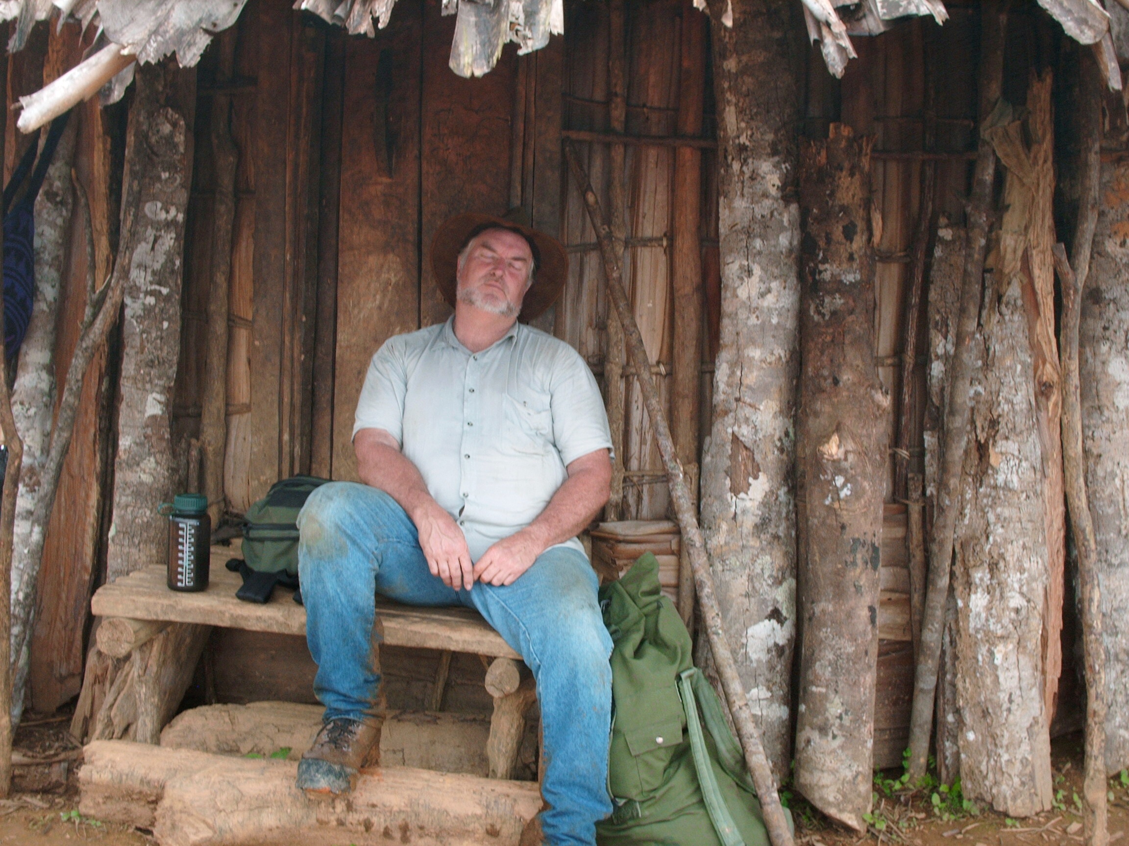 Now back to the chairs. I learned why there were no chairs for my use. Possibly, chairs bring to the natives’ minds another one of the old, outdated customs of this area. When a highly respected leader or tribal elder died, the villagers would build a chair, tie the body to this chair with vines, and then set the body and chair inside a hut. Then for about six months, the villagers would keep a smoky fire going 24/7 in the hut which would dry out the body until it was like meat jerky. Once or twice a day someone would enter the smoky hut and wipe off the body fluids until the body became completely dried. After the process was completed, the person of honor was memorialized by being mounted to a large rock overhang while still seated in the chair. There was one such rock ledge with a couple of bodies not far from where I was standing. What was left of the bodies and chairs had a grotesque appearance with the bones and teeth shining white against the leathery, blackened, and dried skin. This practice has since been banned because some say that many people got sick and died after several times of entering the hut and wiping off the body during the drying process.