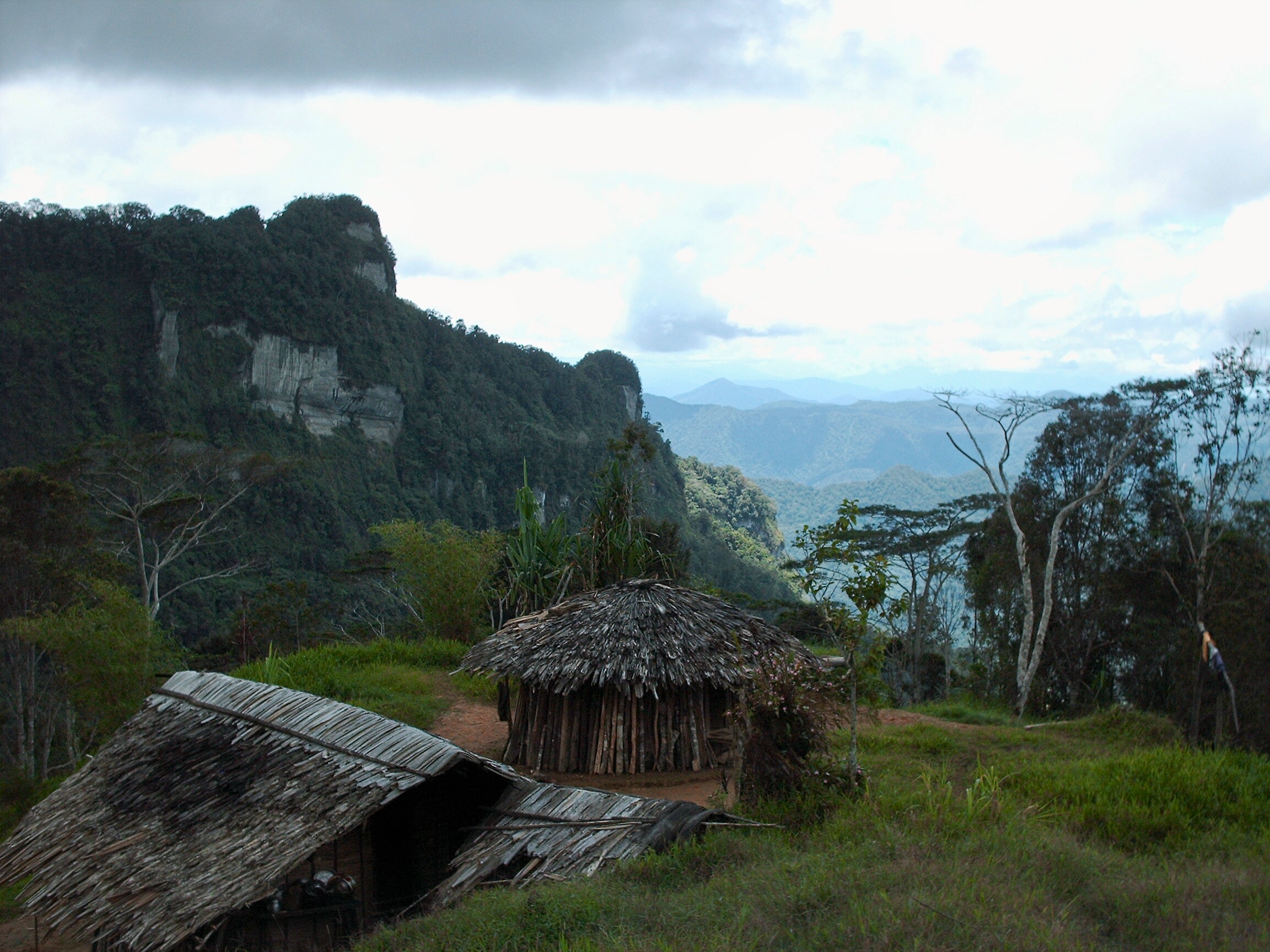 The garden site had three round grass huts for shelter and a nicely cleared area with few trees, so I could actually see for many miles over some of the lower mountaintops and into other valleys around this area.