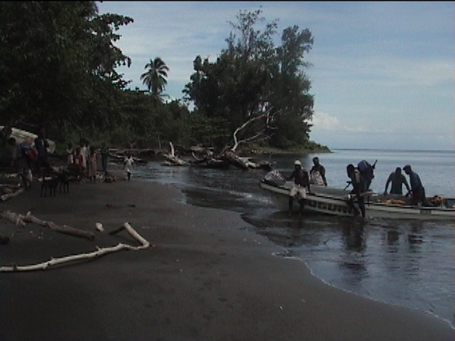 Plowing through the water at barely six knots, the rust bucket slowly makes it way to Umboi. Food and water are what you brought with you and since we did not know about the ferry’s lack of conveniences for its passengers, we suffered. With us was our translator, Harry Bonjo. Fortunately for us there were several men from Gomlongong village riding with us. After some time together on the ferry, they and Harry started talking together and remembering us from our other expeditions, which also stirred my memory of them. It was through Harry that we found this common link because he was able to speak their language and explain to the people the reason these two foreigners were going to Umboi. They offered us some of the food and water they had brought along and it helped to offset our hunger and thirst. Through Harry’s translation of our conversations, we had an interesting time of visiting with the men and reminiscing about the last expedition of eight years ago.