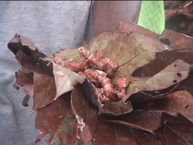 I took pictures of them eating those monster grubs. Then they challenged me to eat one. After much discussion, I chewed one down and they all laughed. Not bad. It was crunchy with very little flavor, almost disappointing.