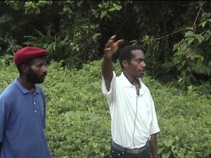 Mark’s hut sits on a nice clear ridge just outside of the main village of Gomlongong. This situation allows for viewing of Mt. Bel without any obstructions. Kau has seen the “bright light, plenty of light” but admits he does not know what the actual flying creature looks like. All he has seen is the bioluminescence flying to and from Mt. Bel.