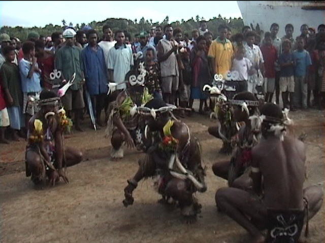 After seventeen exhausting hours, we finally landed at the concrete pier at Lablab Mission. The best thing about this boat ride was that the seas were very calm! As we were unloading, we noticed a large crowd already on the pier. As we got closer we saw it was a local dance group from the “Pig Clan.” Dressed in the old traditional dress with pig-tusk-necklaces and shells, they performed nearly all the dance in the squat position, bouncing up and down to the rhythm of the drums. This was quite an exciting welcome for us, even though no one knew we were coming. Thankfully, it was because of coincidental timing that we were able to be entertained by this group.